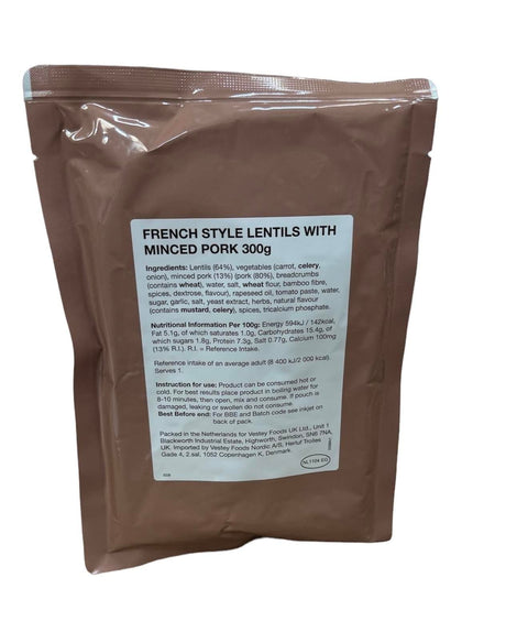 British Military Ration Main Meal Pouch - French Style Lentils With Minced Pork 300g