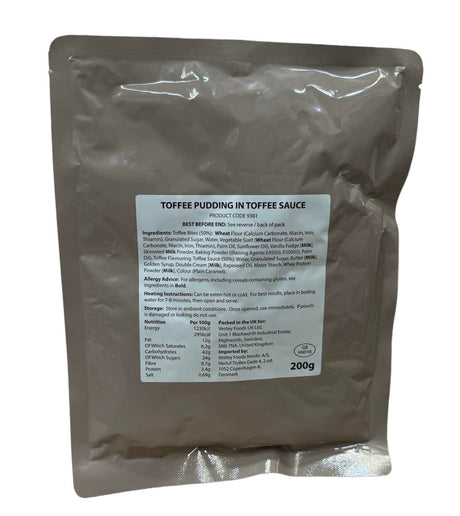 BULK BUY - British Military Ration Main Meal Pouch - Toffee Pudding In Toffee Sauce 200g x 20