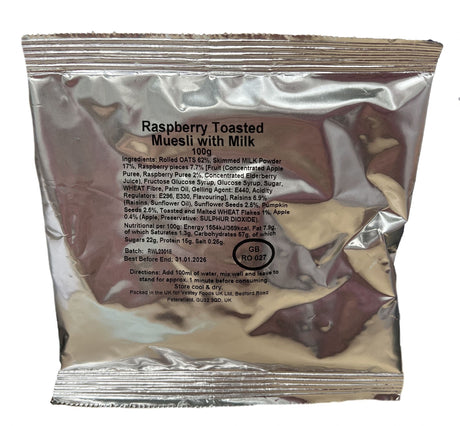 British Military Ration Meal Breakfast Pouch - Raspberry Toasted Muesli With Milk 100g