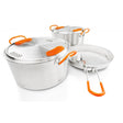 The bail handles on the pots ensure easy and secure carrying and pouring, while the innovative Strainer Lid with silicone thumb holds makes draining a breeze. With its rust-proof finish and ability to handle direct cooking on campfires and coals, the Glacier Stainless Base Camper is not only durable but also incredibly versatile. Cleaning up is a cinch thanks to the brushed stainless steel construction that helps eliminate hot spots.