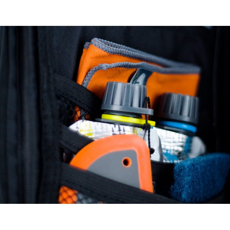 • Includes: Collapsible Whisk, Pivot Spoon, Pivot Spatula, Spicer, 2 Condiment Containers, Cutting Board, Scrubber, Scraper, Camp Towel, Ballistic Nylon Case