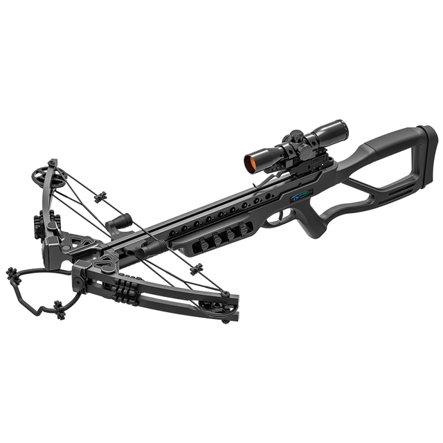 Although lacking an adjustable shoulder stock and Picatinny rail underneath, this crossbow includes a cocking string for easy drawing. The package comes complete with a 4x32 sight, sling, quiver, cocking string, and 4 Man Kung 20-inch aluminium crossbow bolts for a comprehensive shooting experience.