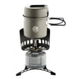 • Kit includes: Crux Lite stove (72g) with handheld piezo ignitor, 0.9L Terra Weekend HE Heat Exchange pot with non-stick coating, fry pan lid, clip-on windshield, stuff bag, and user manual
