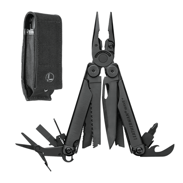 The Leatherman Wave+ Multi Tool in Black takes the best selling multi tool worldwide & dresses it up in this stylish dark finish. Most of the tools are on the outside meaning you can use them without opening up the full tool and all tools can be opened and operated with one hand for those tricky jobs. All 18 tools lock into place giving you a super strong, efficient work horse.