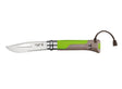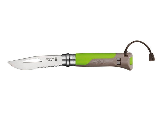 Elevate your outdoor experiences with the indispensable Opinel N°08 Outdoor Knife in Green, a versatile companion for thrill-seekers engaging in mountaineering, paragliding, trekking, canyoning, and sailing adventures. Unleash the power of its 8.5cm Sandvik 12C27 modified stainless steel blade, 2.5mm thick, delivering exceptional cutting precision and resilience against the rigours of outdoor pursuits. The 3.5cm partially serrated blade effortlessly slices through natural and synthetic ropes, catering to a myriad of outdoor demands. Embrace its shackle key, compatible with 4 to 10mm shackles, enhancing its utility during maritime endeavours.