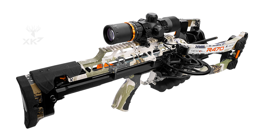 The Ravin LLC R470 XK7 Compound Crossbow - Camo delivers extreme power, precision, and concealment for serious hunters. Finished in the advanced XK7 camouflage pattern for superior stealth, this high-performance compound crossbow combines cutting-edge technology with rugged reliability for exceptional results in the field.