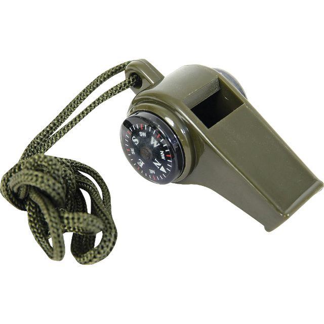 Introducing the versatile Mil-Com 3-in-1 Whistle, a must-have accessory for outdoor enthusiasts. This whistle is available in a classic green colour, blending seamlessly with nature.