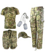 The Kombat UK Kids Explorer Army Kit - BTP includes a t-shirt, trousers, tactical vest, baseball cap, which all feature a BTP camouflage pattern, and also silver dog tags. A great gift for your little soldier or mini adventurer, let their imagination run wild as they embark on their wildest adventures yet. This kit is perfect for playing soldiers, exploring the outdoors or even just for casual wear.
