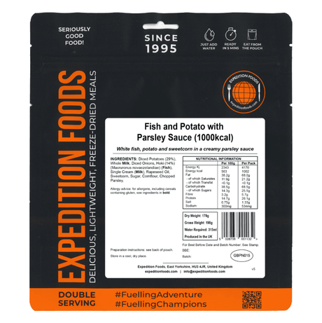 Expedition Foods Freeze Dried Meal Pouch - Fish And Potato With Parsley Sauce - Various Sizes