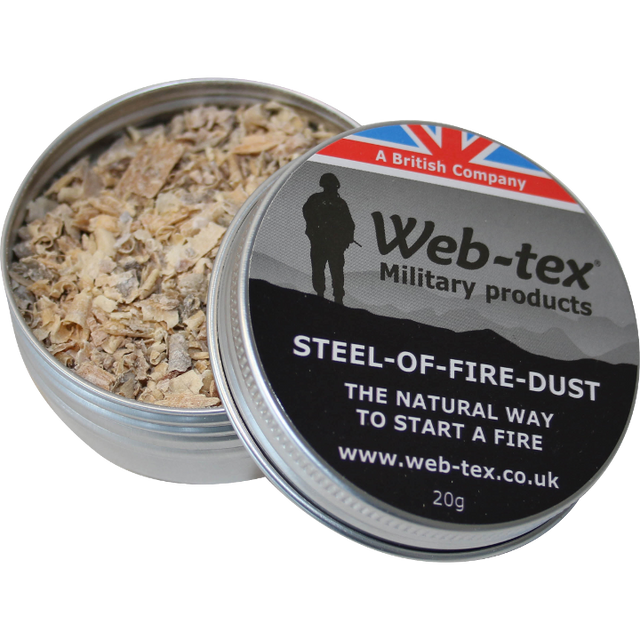 Introducing The Web-Tex Steel-of-Fire Fire Starter, a reliable solution for igniting fires in the great outdoors. Crafted from dust-treated wood shavings, this product is designed to catch a spark effortlessly, making it the natural choice for starting fires.
